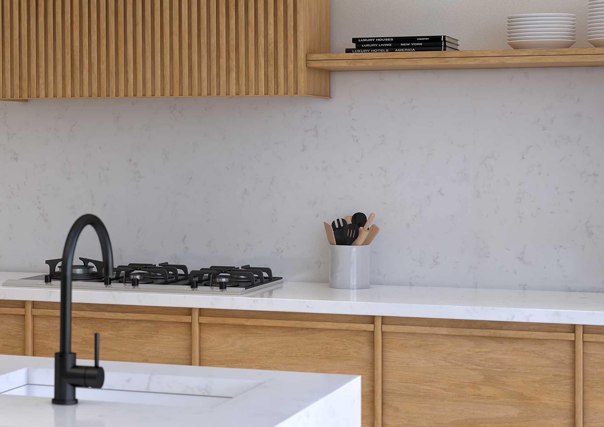 Aspectul său rafinat reproduce eleganța marmurei naturale, oferind în același timp rezistența și versatilitatea caracteristice quartzului compozit premium.