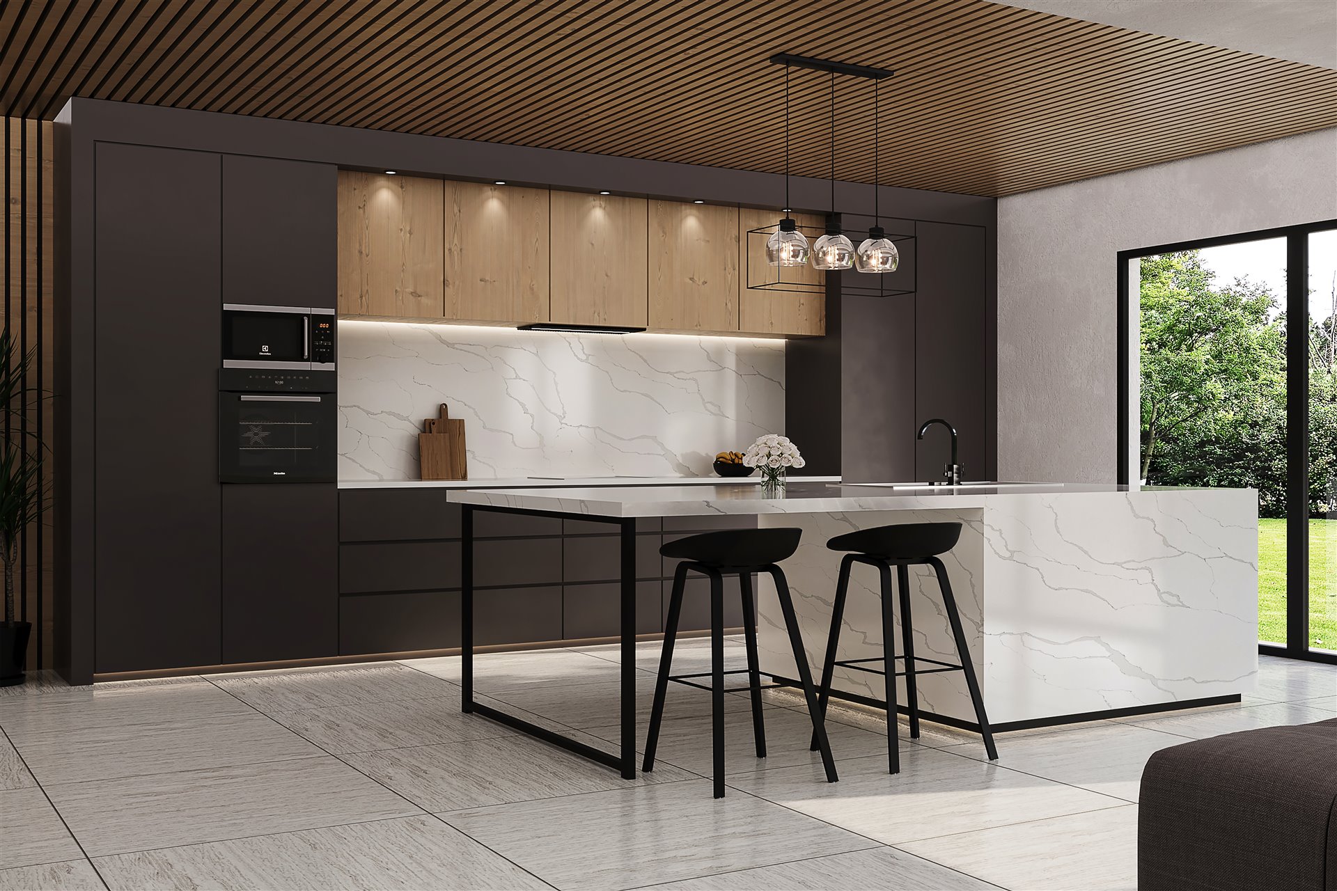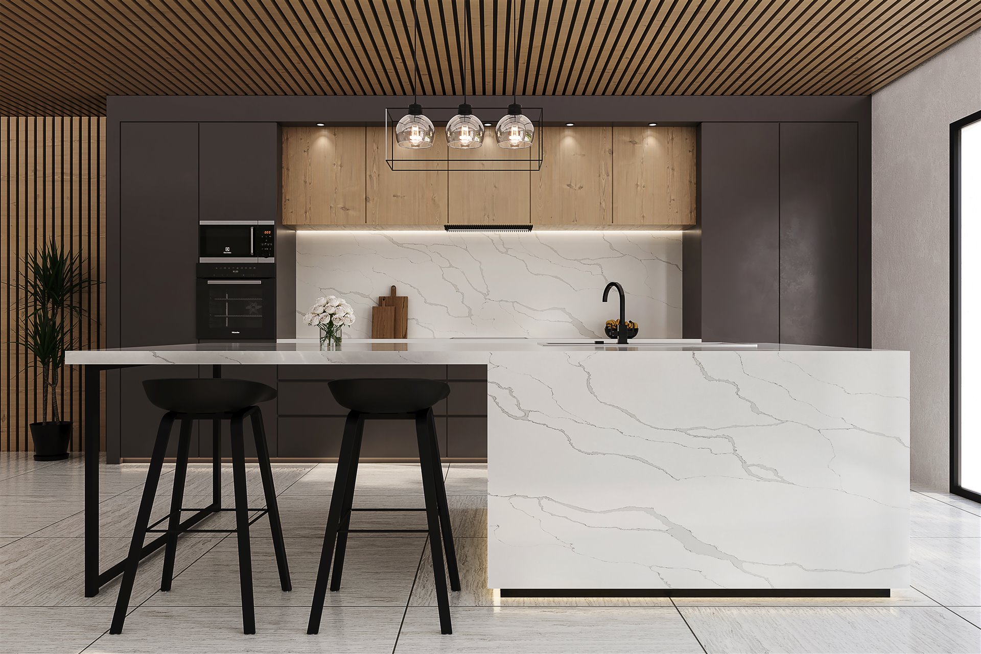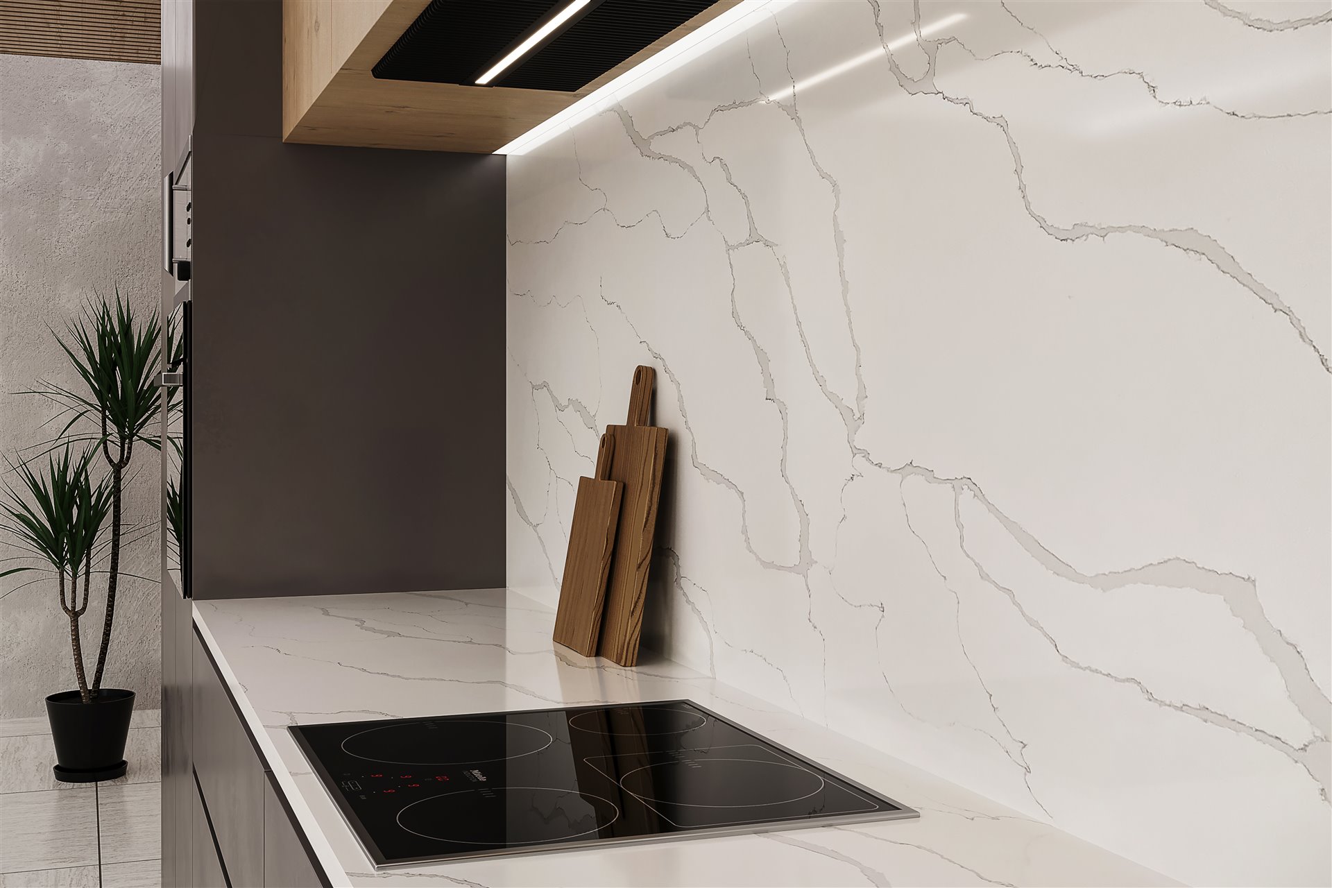 Suprafețe premium din cuarț pentru fabricarea pe comanda de: blaturi de bucătărie, blaturi pentru baie, glafuri, trepte, receptii spații comerciale etc.